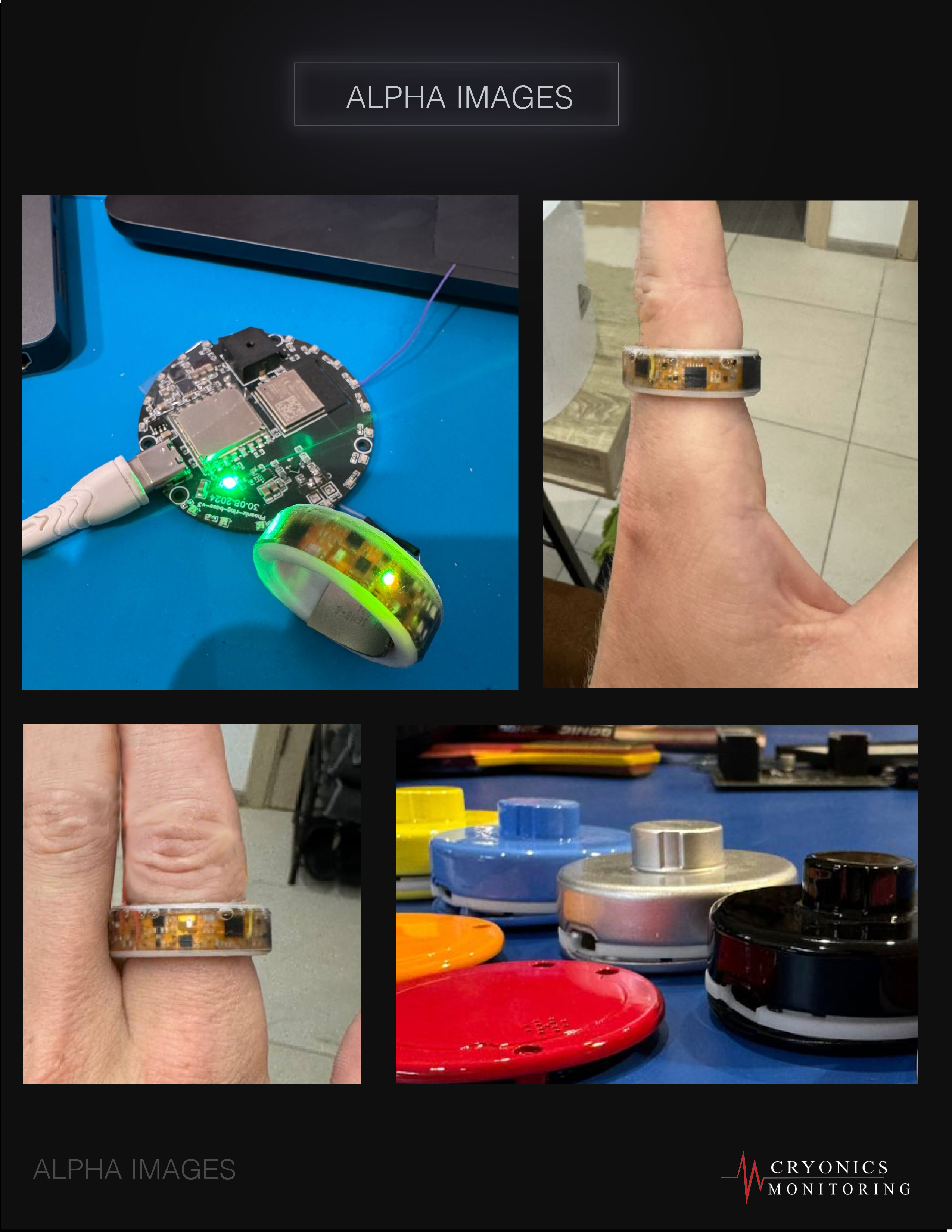 In December 2024, our first fully assembled smart ring was completed, featuring all core components integrated into a compact, functional design. The ring includes wireless charging, LoRa and Bluetooth connectivity, an optical sensor for finger detection, and an accelerometer for motion monitoring — establishing the foundation for a fully autonomous cryonics monitoring device.